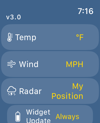 Select your measurement choices in the settings screen: